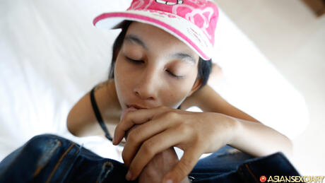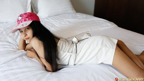 Asian Sex Diary: The Asian girl Soe takes off her baseball cap and tank top to pose nude