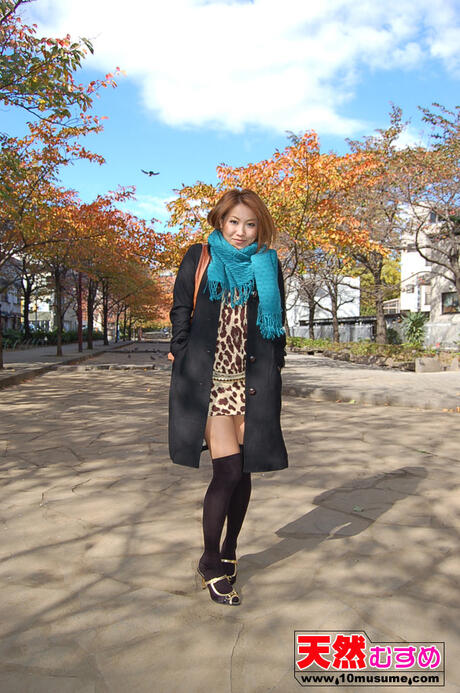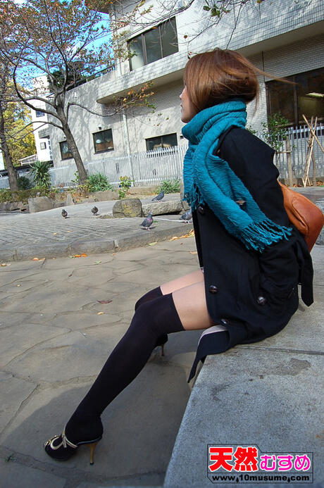 10musume: The blonde teen Yuna pees on the sidewalk and masturbates in a black coat