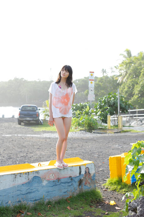 All Gravure: The brunette beauty is posing in a white dress and black boots