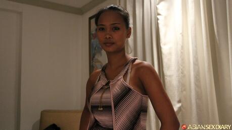 Asian Sex Diary: The sexy Asian babe Angela strips off and bares her sexy butt and tits in a solo