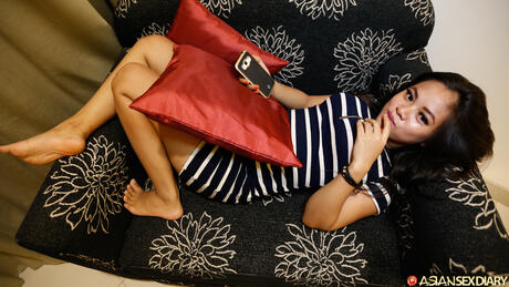 Asian Sex Diary: The sexy Asian babe Nini demonstrates her big booty and toes in a solo