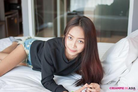 Creampie in Asia: The sexy Asian babe Yok shows her sexy ass and spreads her pussy in a solo