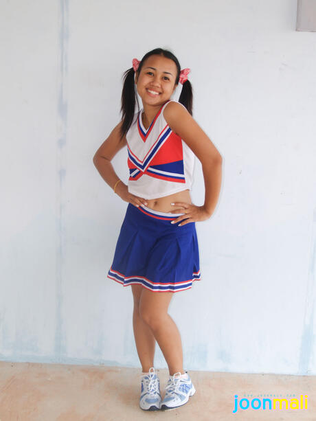 Joon Mali: The sexy Asian cheerleader Joon Mali strips and demonstrates her hot ass in a solo