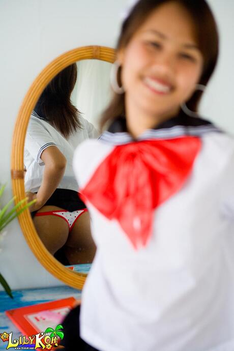 Lily Koh: The sexy Asian schoolgirl Lily Koh strips and flaunts her big booty in a solo