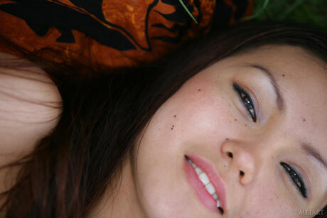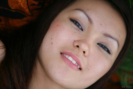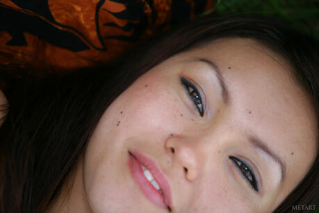 Metart: The sexy brunette Agnes A. shows her perfect ass and tits in a hot outdoor strip