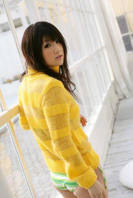 All Gravure: Hot Brunette Yukina Momoyama tar av sig bikini och trosor på ett bord